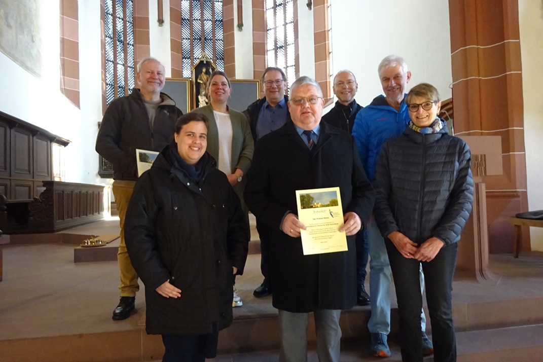Im Gottesdienst am 1. März in der Hammelburger Stadtpfarrkirche erinnerte Waite zunächst an frühere Mitglieder: Udo Schmitt und die leider verstorbene Barbara Schelbert. Dann dankte er drei Frauen und drei Männern, die im bisherigen Gemeindeteam in besonderer Weise Verantwortung für unsere Pfarrgemeinde übernommen haben, mit einer Urkunde und einem symbolischen Geschenk: