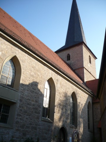 Im Jahre 1502 wurde unter Fürstbischof Lorenz von Bibra (1495 - 1519) die erste steinerne Kirche mit Chor und Turm errichtet. Diese wurde im Jahre 1909 erneuert, wobei Chorraum und Turm der alten Kirche erhalten blieben. Dies ist noch am Schlussstein des spätgotischen Netzgewölbes zu sehen. 1787 wurde der Jakobus-Bildstock an der Außenseite der Kirche errichtet, welcher heute der älteste Jakobus-Bildstock im Bistum Würzburg ist. Bis zum Jahre 1840 war um die Kirche der Friedhof angelegt, der in diesem Jahre dann zur Kreuzkapelle verlegt wurde.